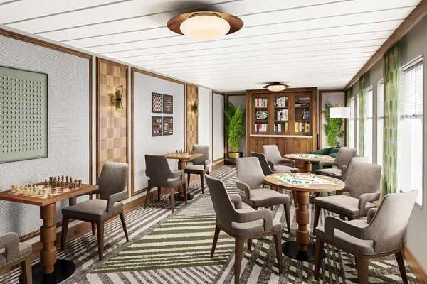 Tucked away in the heart of the ship, this mid-ship lounge offers a tranquil sanctuary for guests seeking moments of solitude or peaceful interaction.
